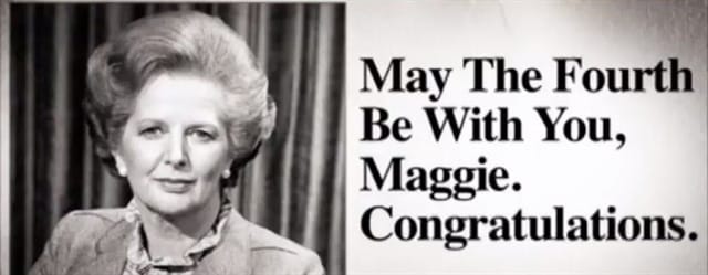 What always brings a smile to my face is the delightfully quirky origin of this now-global celebration. It wasn't born in a Lucasfilm marketing meeting or timed with a film release. No, the first recorded use of the pun traces back to May 4th, 1979, in the UK. Supporters of Margaret Thatcher, celebrating her election as Prime Minister, took out an ad in the London Evening News proclaiming, "May the Fourth Be With You, Maggie. Congratulations".